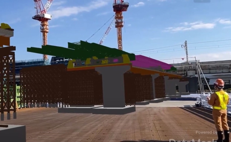DataMeshは、三菱地所設計が設計に携わる「TOKYO TORCH」街区 にて日本一の高さ約390mを予定し ている「Torch Tower」を対象に、 NTTコミュニケーションズ、NTT QONOQの立ち会い支援の下、設計 3Dデータ(BIM)を用いて、竣工予定 地で計画建物の可視化の効果検証 を目的としたXR投影見学会が実施されました。