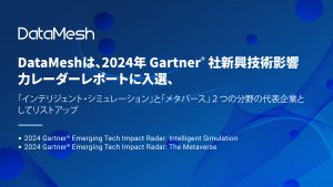 DataMeshは、Gartner社の「2024 Gartner® Emerging Tech Impact Radar: Intelligent Simulation」と「2024 Gartner® Emerging Tech Impact Radar: The Metaverse」の2つのレーダーレポートに入選され、代表的な企業(Sample Vendor)としてリストアップされました。