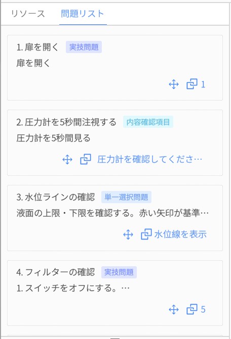 2. 問題用のチャプターを作成:問題に関連するチャプター(例:「点検準備」)を作成し、対応するヒント、テキスト・画像コンテンツ、またはシーン情報を追加します。