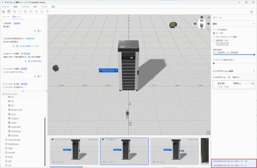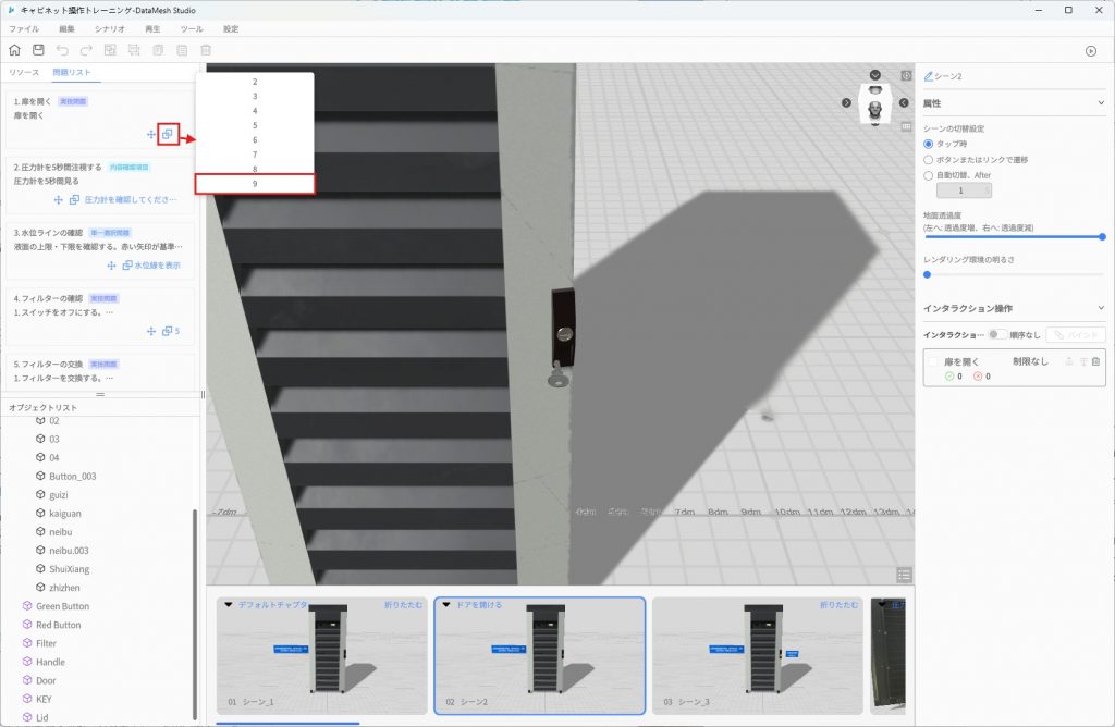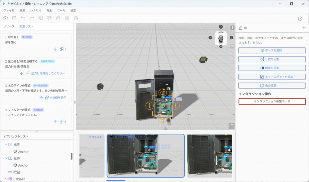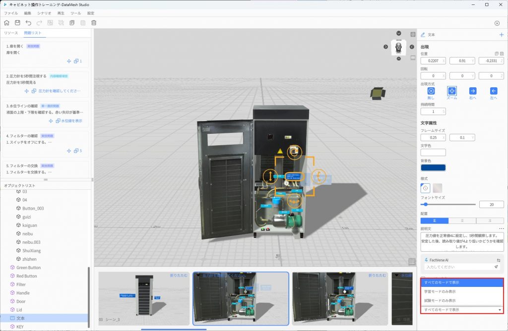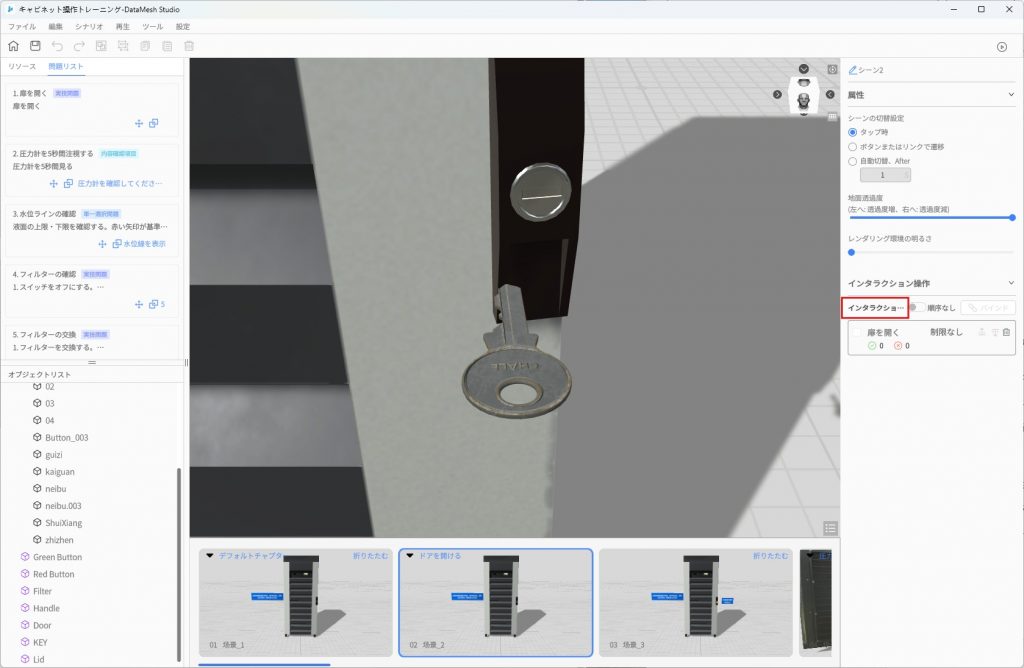 - 教材を開く:DataMesh Studioで、すでにシナリオが紐付けられている教材を開きます.