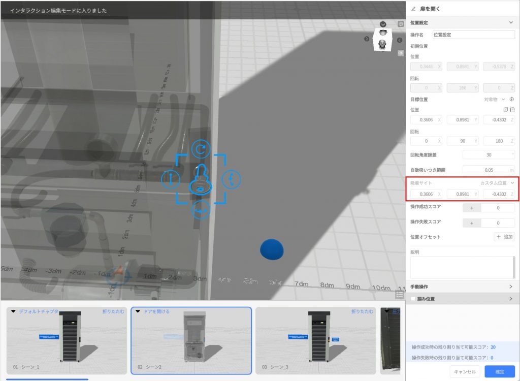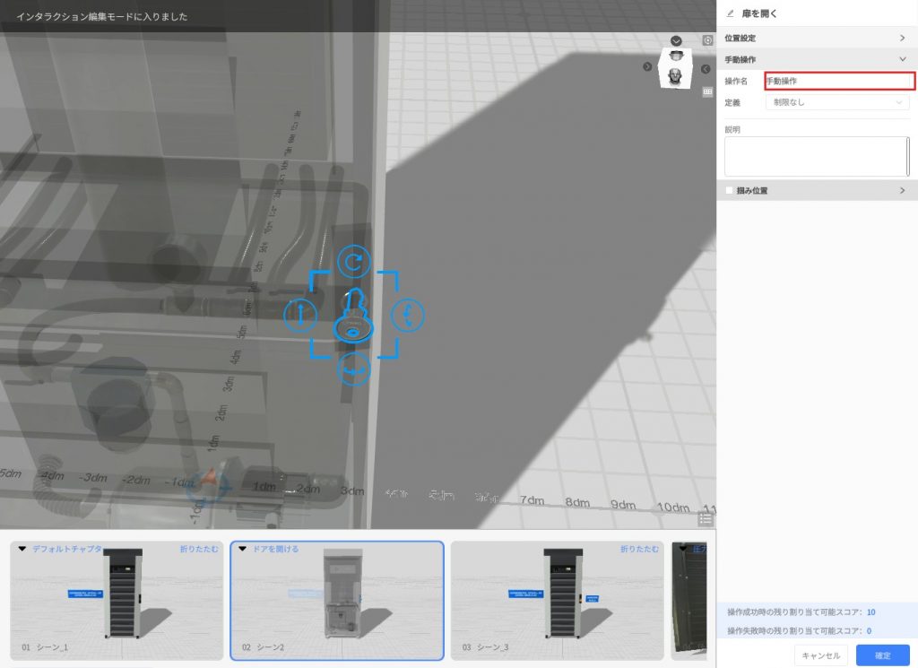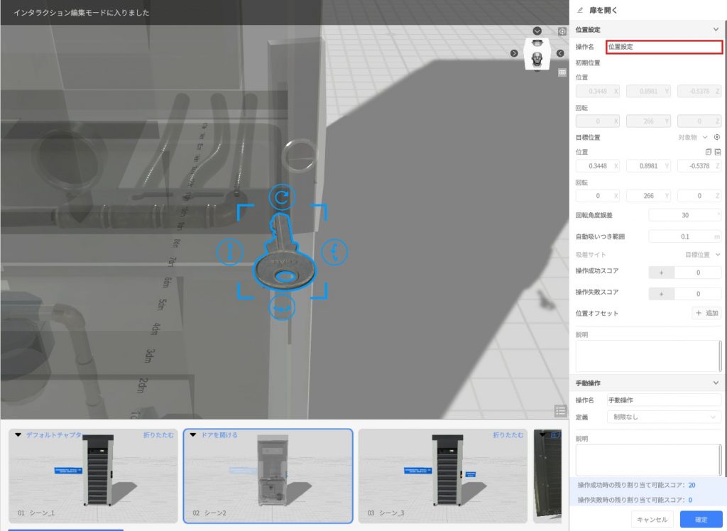 実技問題 | インタラクションIDに紐付け、目標位置・回転角度・得点ルール・操作順序を設定できます。 |