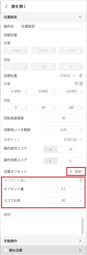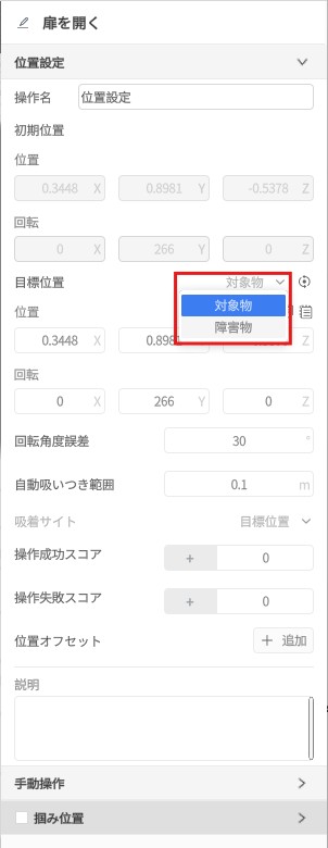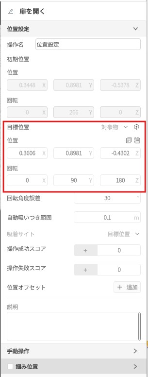 - 操作名の設定(任意):デフォルト名は「掴み位置」ですが、操作内容に合わせて識別しやすい名称に変更できます。