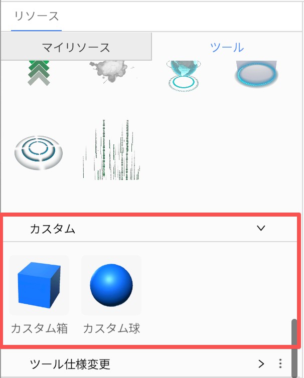 - 「確定」ボタンをクリックして追加を完了します。設定が完了すると、「ツール」パネルの「ツール仕様変更」の下に、その拡張ツールが表示されます。