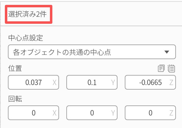 - 指定オブジェクトの中心点:複数選択されたオブジェクトの中で特定のオブジェクトの中心点を、複数選択されたオブジェクトの中心点として指定します。