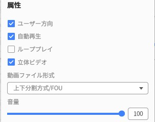 自動再生 | シーン読み込み時に自動でビデオを再生するかどうかを設定します。 | 有効/無効 |