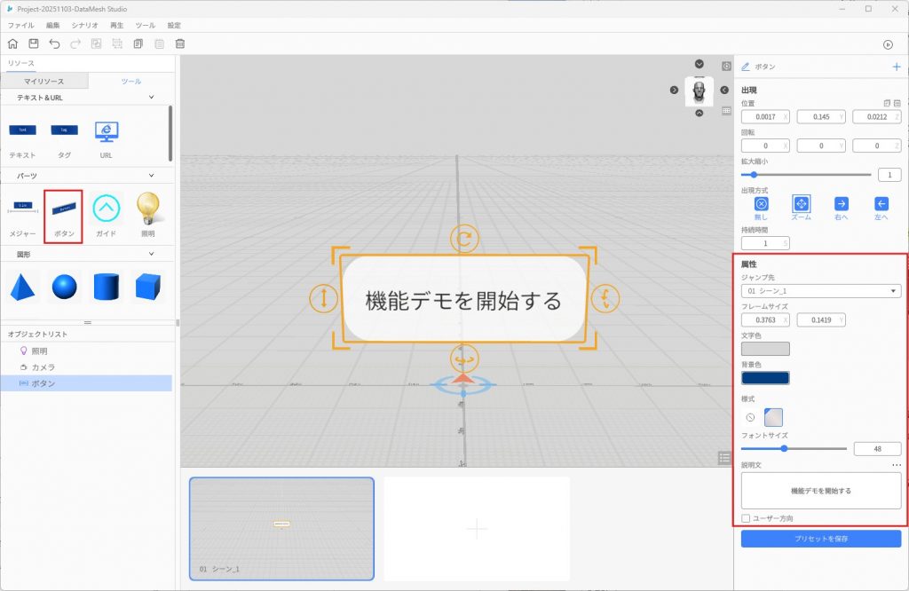 ボタン は、シナリオ再生時に操作を実行したり、シーンを切り替えたりするための一般的なインタラクションツールです。