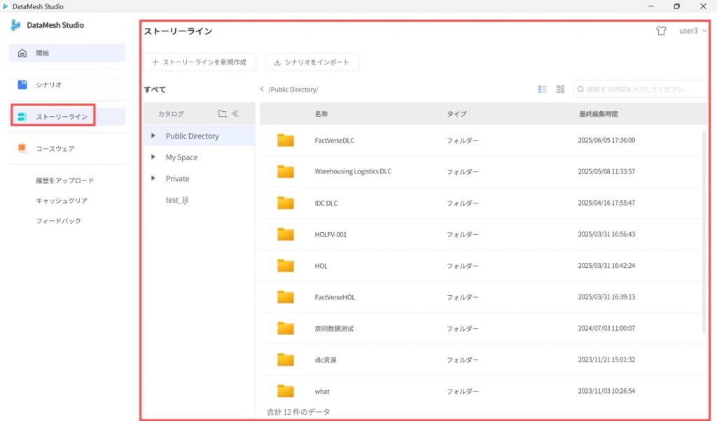 ページ上部の【ストーリーラインを新規作成】ボタンをクリックして、新しいストーリーラインファイルを素早く作成できます。
