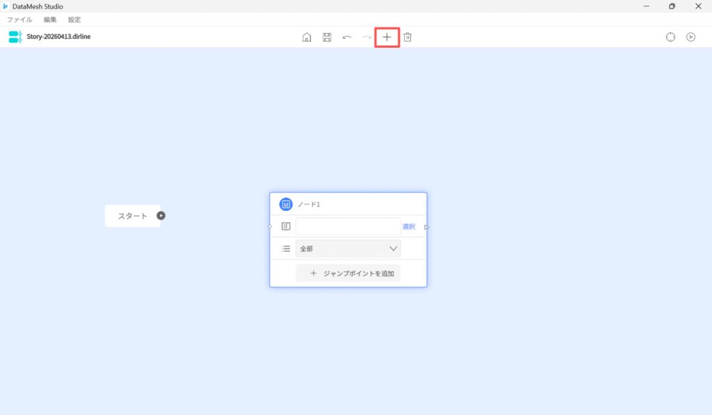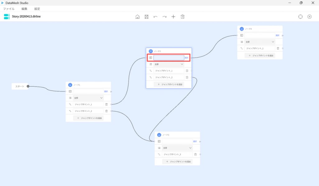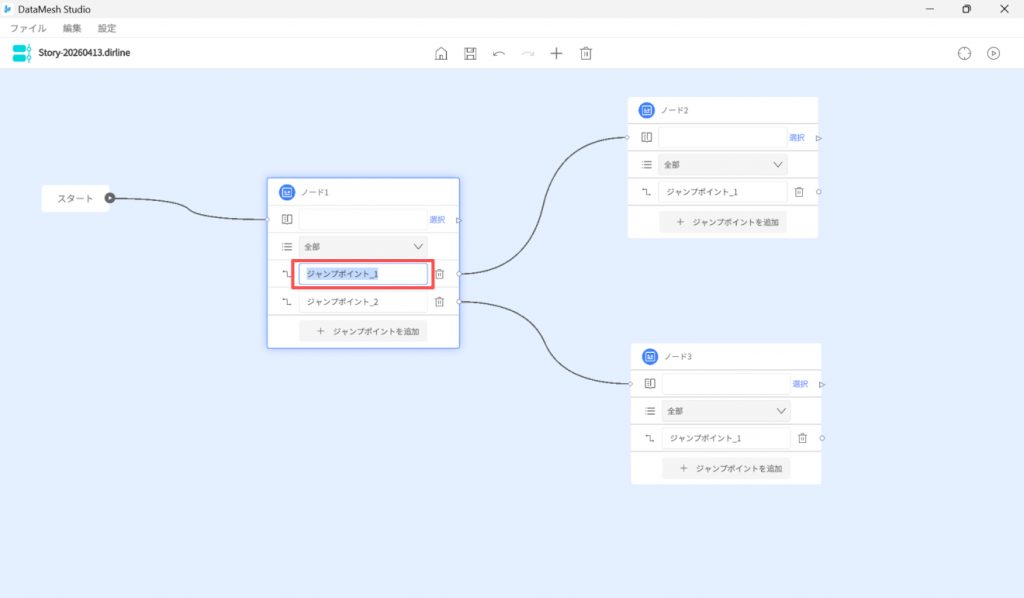 - ノードを選択:ストーリーライン編集画面で、ジャンプを設定したいノードを見つけて選択します。