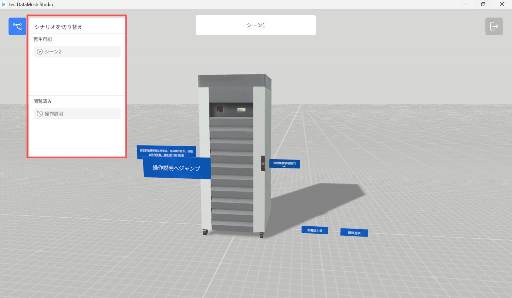 DataMesh One では、ストーリーラインファイルを再生し、各シナリオの内容に柔軟にジャンプすることが可能です。
